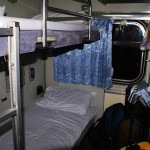 - La seconde classe : Il existe deux sortes de wagon couchettes en deuxième classe. Ceux avec air conditionné et ceux avec ventilateurs. Dans les wagons avec air conditionné, il y a un couloir central avec 2 ou 4 places de chaque côté, qui se transforment en couchettes. Il y a environ 40 places par wagon. Alors que dans les wagons “ventilateurs” vous ne trouverez que le système à 2 places (face à face), donc chaque wagon possède environ 32 places. Toutes les couchettes sont équipées d’un rideau individuel, ce qui vous apportera un peu d’intimité. Les couchettes du haut, légèrement plus étroites, sont un peu moins cher. Le service des repas est le même que dans la première classe avec un menu Thaï ou un autre continental.