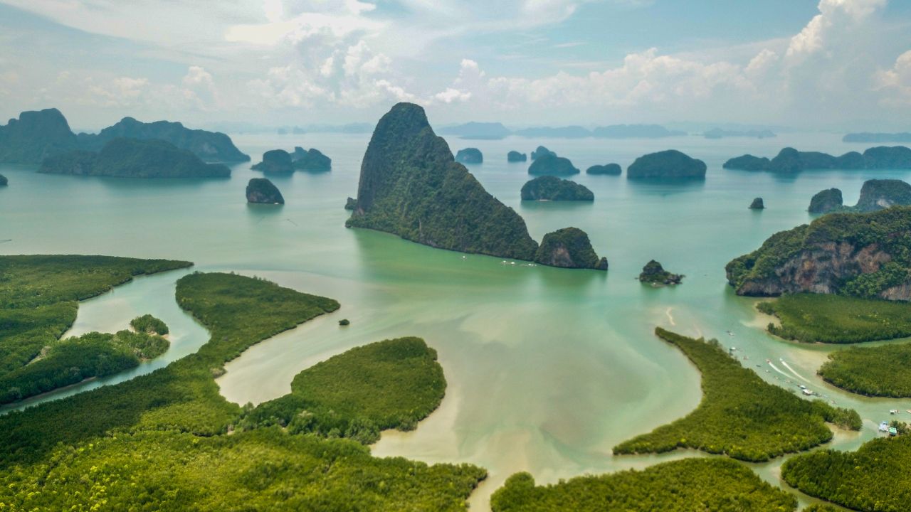 - Baie de Phang Nga (Phuket/Krabi) : Même avec un peu de pluie en début de mois, une excursion en kayak pour explorer les lagons cachés et les pics karstiques, comme l’île de James Bond, est spectaculaire. La brume matinale confère un côté mystique aux falaises.